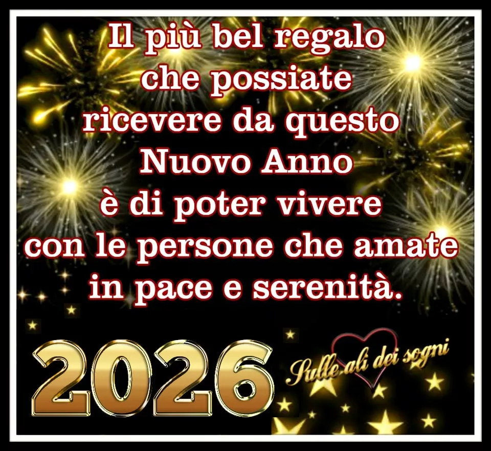 Il più bel regalo che... Il più bel regalo che possiate ricevere da questo Nuovo Anno è di poter vivere con le persone che amate in pace e serenità. 2026. Link: Codice HTML: Codice BB: Buon Anno Nuovo Immagini Immagini Simili
