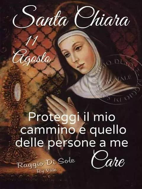 Santa Chiara. 11 agosto... Santa Chiara. 11 agosto. Proteggi il mio cammino e quello delle persone a me care. Raggio di sole by Vale. Link: Codice HTML: Codice BB: Santa Chiara Immagini Immagini Simili