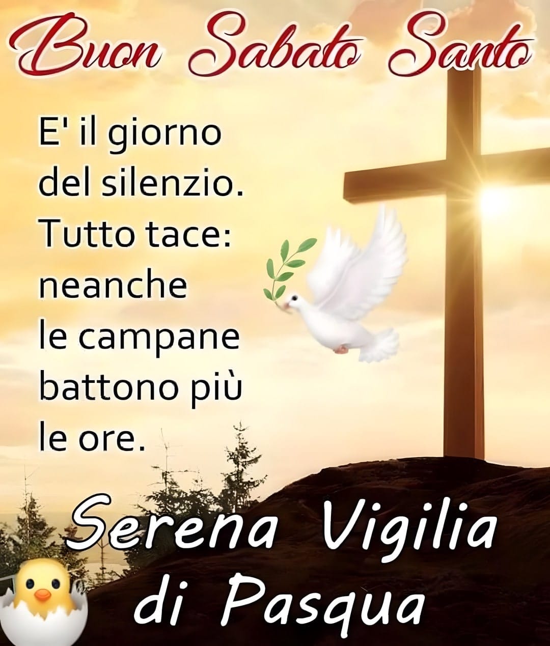 Buon Sabato Santo. È il giorno del silenzio. Tutto tace: neanche le campane battono più le ore. Serena Viglia di Pasqua.