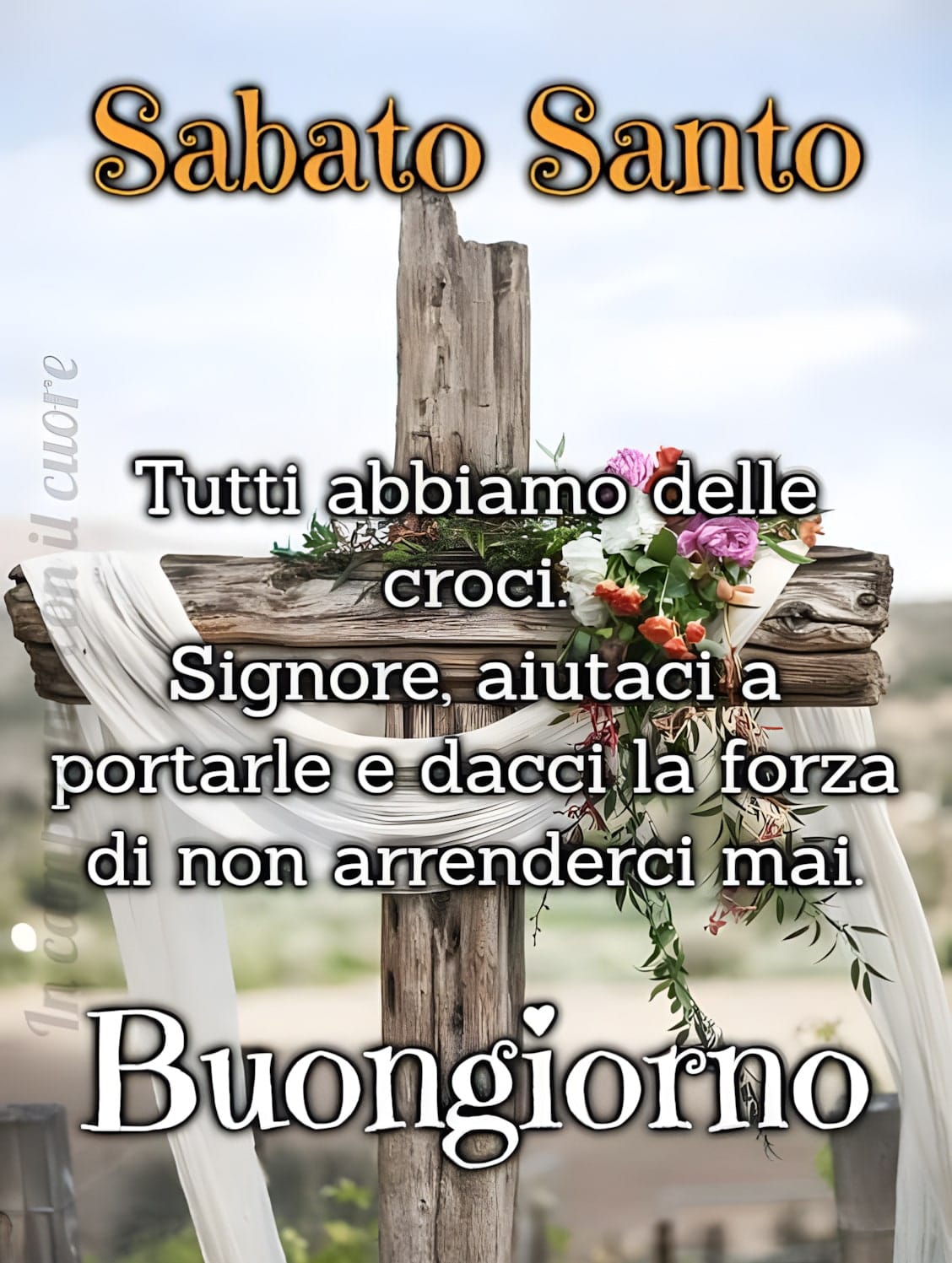 Tutti abbiamo delle croci. Signore, aiutaci a portarle e dacci la forza di non arrenderci mai. Buongiorno.
